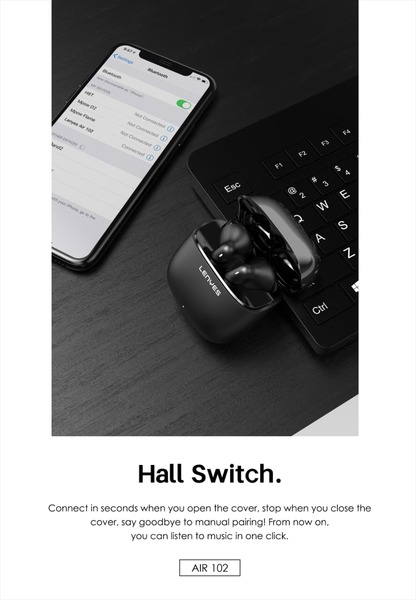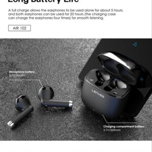 The Lenyes Air 102 true wireless earbuds combine performance, precision, and power for an exceptional audio experience. Powered by the advanced Zhongke 5656A chipset, they offer stable, high-quality Bluetooth transmission with ultra-low latency. Featuring 13mm dynamic drivers, they deliver deep bass, clear mids, and crisp highs for immersive, balanced sound. Each earbud has a 30mAh battery paired with a 320mAh charging case, providing extended playtime, while fast charging offers 2 hours of use from just 5 minutes. The Smart Hall Switch ensures instant auto-pairing as soon as you open the case, and a 10m Bluetooth range maintains a steady connection. With Lenyes Audio App support, users can easily customize sound and controls. Designed for modern listeners, the Air 102 redefines wireless freedom and convenience.