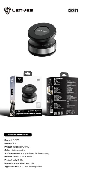 This magnetic car phone holder features a premium build made from PC + PVC materials with a sun-polished, oil-sprayed finish in elegant black and gunmetal tones. It offers a strong 15N magnetic grip to securely hold your phone, even on rough roads. Universally compatible with all 4.7”–6.7” smartphones, it combines compact dimensions (60 × 61 × 47 mm) and a lightweight 105g frame for durability and convenience. With its minimalist, modern design, it adds a sleek, sophisticated touch to any car interior.