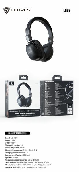 The Lenyes LH86 is a stylish, versatile headphone designed for everyday use. It features Bluetooth 5.4 for a stable connection up to 10m, 40mm drivers for deep bass and clear sound, and up to 20 hours of playtime at full volume. Fast charging powers it fully in ~1.5 hours. Enjoy Bluetooth and AUX playback, hands-free calling with voice assistant support, and a low-latency gaming mode. Dual-device pairing adds convenience, while the lightweight design ensures all-day comfort. Ideal for music, calls, and gaming, the LH86 blends performance with portability.